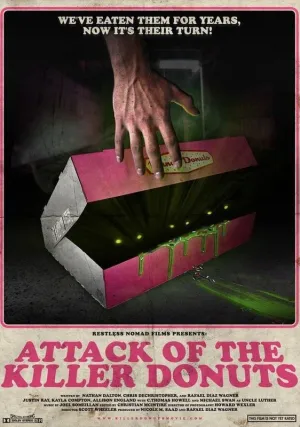 Начав просмотр комедийного фильма ужасов «Нападение пончиков-убийц», зритель узнает о том, что уже много лет подряд ученые и лучшие умы всего мира уверенно утверждают, что генно-модифицированные продукты могут нести серьезную опасность для людей. Но производители, которые не обращают никакого внимания на предостережения, заботясь исключительно о своих доходах, продолжают увлекаться использованием специальных добавок. Могли ли они предположить, к чему это может привести? В одном из небольших американских городков поставщики привозят непроверенные продукты, предназначенные для изготовления пончиков. Вскоре после этого сотрудница пекарни начинает слышать странные звуки. Проверив в шкафчике, она с ужасом замечает компанию пончиков, способных нападать на людей. Ожив, вкусная выпечка собирается бросить вызов человеческой цивилизации. Любителям калорий придется заплатить высокую цену за свое увлечение. Фильм «Нападение пончиков-убийц» может стать отличным выбором для поклонников комедийно-пародийных хорроров. Приятного просмотра.