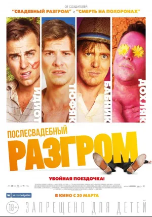Далеко не самая спокойная примирительная беседа главных героев фильма «Послесвадебный разгром», которой закончилась предыдущая часть серии картин, обернулась совсем не тем, что ожидали друзья. Люку не удалось оправиться от падения с обрыва, что привело к настоящей трагедии. В одно мгновение бурная и веселая церемония бракосочетания превратилась в траурное отпевание. На этом трудности могли бы и закончиться, но для непутевых главных героев это события становится лишь началом в череде бесконечных запутанных сцен. Тому, Дэвиду и Грэму необходимо доставить тело покинувшего этот мир друга из знойной и жаркой Австралии в туманный Лондон, где он, как они сами считают, должен быть похоронен. Кажется, задача простая, но из-за разгильдяйства главные герои не могут справиться даже с этим. Самолет, который должен перевозит тело, терпит крушение в самом центре континента. И теперь, чтобы успеть к похоронам, друзьям необходимо преодолеть множество препятствий, познавая австралийскую глубинку. Хотим порекомендовать к скачиванию или просмотру онлайн на сайте фильм «Послесвадебный разгром» всем, кто любит ненавязчивые комедийные сюжеты.