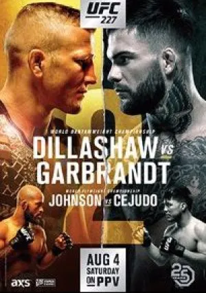Главные бои турнира от «UFC 227: Dillashaw vs. Garbrandt II», прошедшего 4 июня 2018 года в «Staples Center», Лос Анджелес, Калифорния, США. Потери: Дерек Брансон vs Антонио Карлос Джуниор (травма глаза у Брансона) Александр Густафссон vs Волкан Уздемир (травмы у обоих) по мелочам. — Травмы Брансона, Гуса и Уздемира превратили UFC 227 в турнир трех боев, за пределами которых ничего действительно большого. Если первый акт программы еще представляется интересным для гиков от MMA, то во втором вообще грустновато.